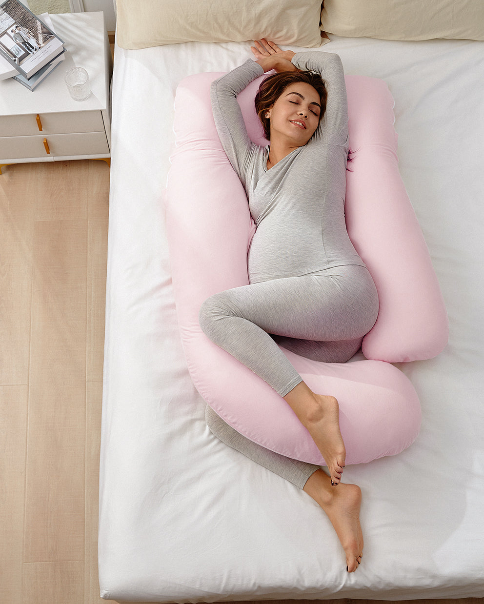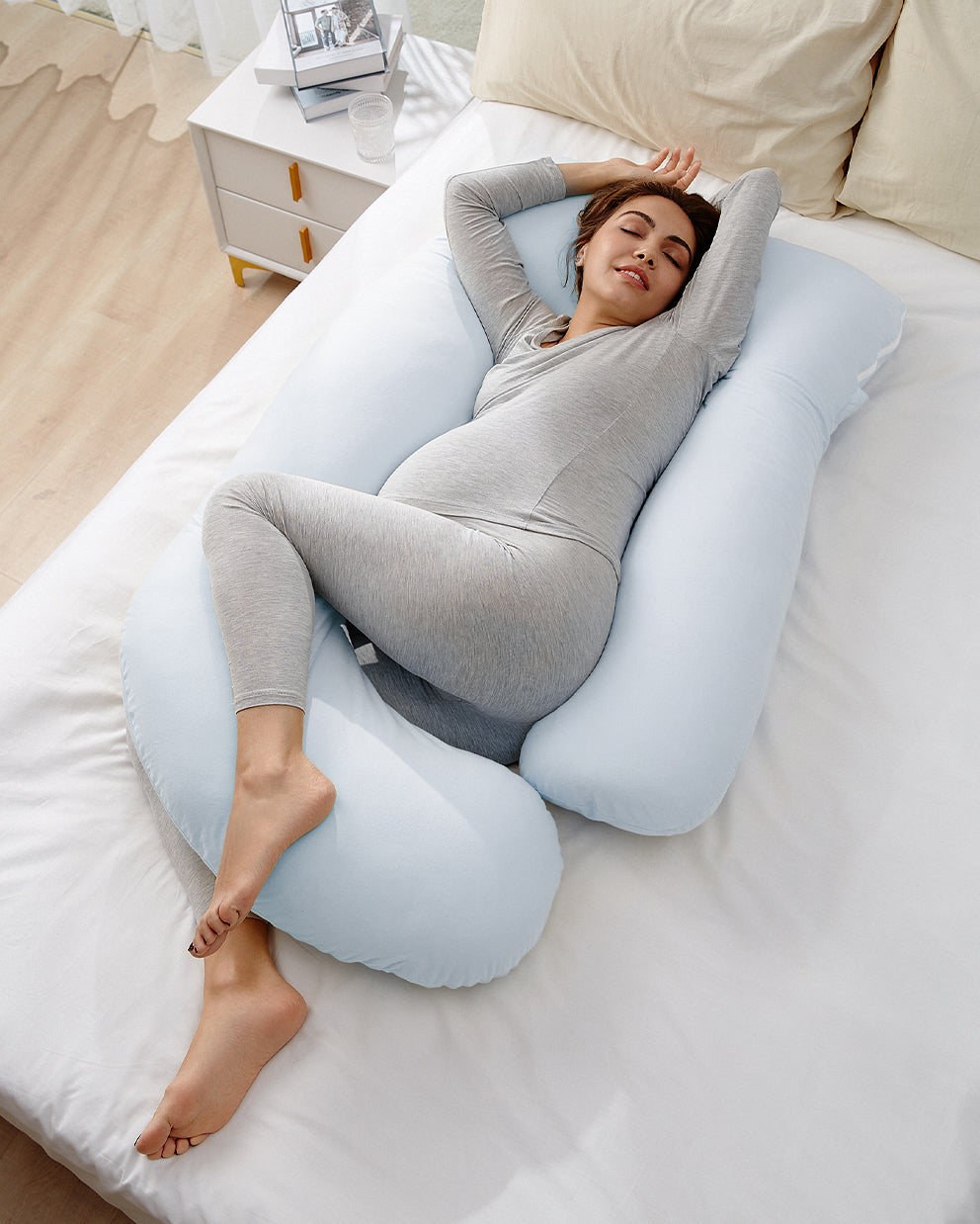 C-shaped maternity pillows are shorter and more flexible, allowing you to adjust position as needed. They're a good choice if you like to move around in bed or prefer localized support.
