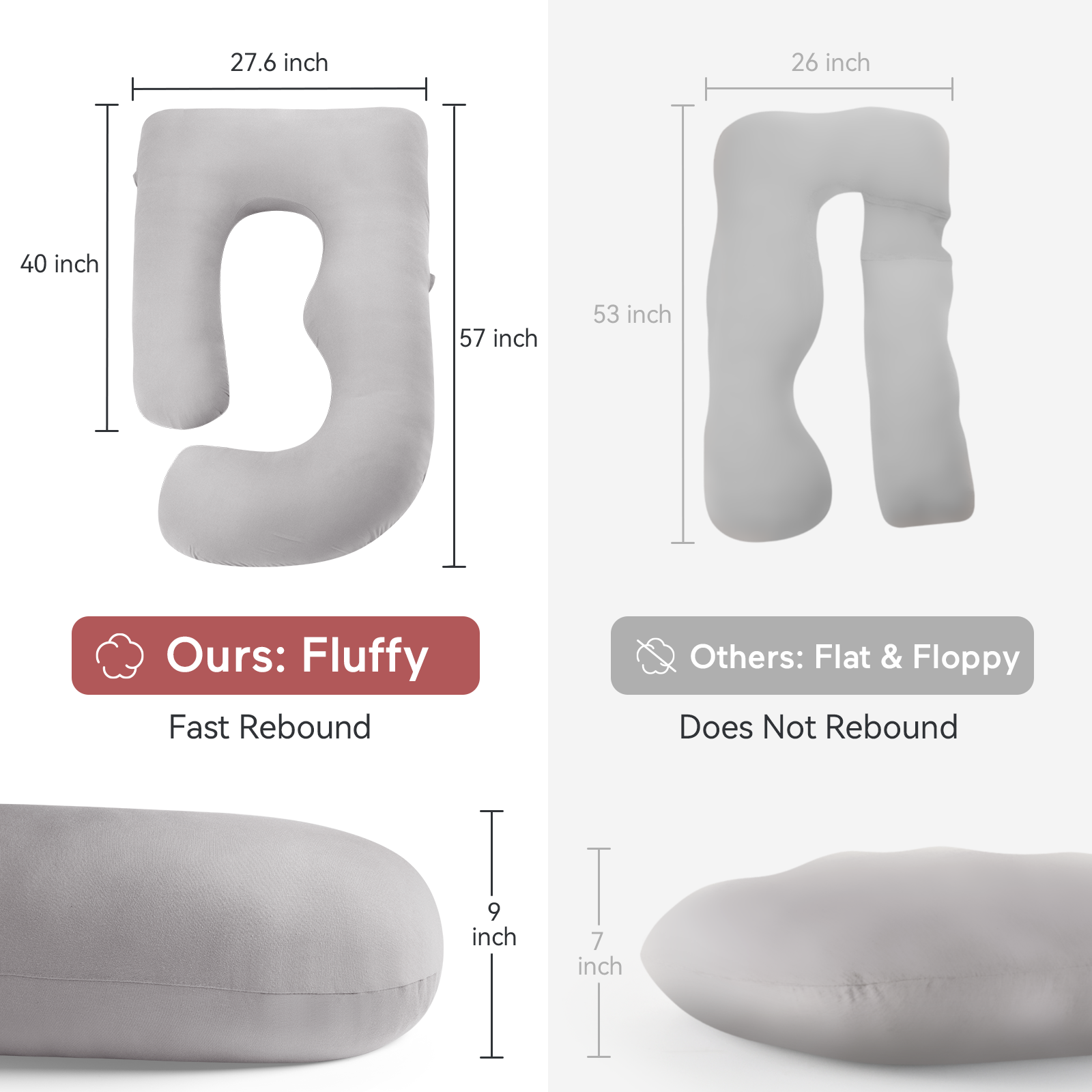 Upgraded U-Shaped Design Body Pillow- The perfect mix of U-shaped and C-shaped pillow provides support for every part of your body including your head, neck, back, hips, knees, legs, making you a restful night's sleeping without tossing and turning.